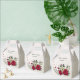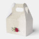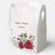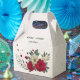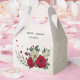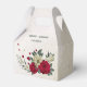 Unique wedding favor box featuring romantic red and pale yellow flowers and green leaves.