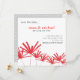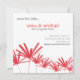 Poppy red palm fronds emerge from the bottom of this save-the-date card for a modern take on a classic announcement. The back of the card features a subtle decorative gray pattern. © 1201AM DESIGNS