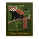 A digital painting of a Red Panda on a tree branch. Add your own text. The red panda (Ailurus fulgens, or shining-cat), which resembles a raccoon, lives in the cool temperate bamboo forests in Sichuan and Yunnan Provinces in China, in the Himalayas, and in Myanmar. Locations with the highest density of red pandas include an area in the Himalayas that has been proposed as having been a refuge for a variety of endemic species in the Pleistocene. Red pandas were once thought to be closely related to the giant panda, but genetics has shown they are more closely allied with the raccoon and weasel families. The animal is now considered a living fossil and only distantly related to the Giant Panda (Ailuropoda melanoleuca) , with which they share part of their range. Their common ancestor can be traced back to the Early Tertiary Period tens of millions of years ago, with a wide distribution across Eurasia. In 2004, a tooth from a red panda species never before recorded in North America was discovered at the Gray Fossil Site in Tennessee. The tooth dates from 4.5–7 million years ago. In August 2010, archaeologists uncovered red panda fossil remains in Washington County in the US state of Tennessee. Although none are known to exist in the wild in North America today, it is believed the red panda thrived in the mountains of eastern Tennessee approximately 4.5 million years ago. Slightly larger than a domestic cat, it has reddish-brown fur, a long, shaggy tail, and a waddling gait due to its short front legs. The average lifespan is 8–10 years, but individuals have been known to reach 15 years. They weigh between seven and 14 pounds. Their red-and-white markings blend in with the red mosses and white lichens that grow on the trees in which they live. Their soft, dense fur covers their entire body—even the soles of their feet. Secretive and gentle creatures, adults are solitary except during mating season. They are generally quiet except for some twittering, tweeting, and whistling communication sounds. They have been reported to be both nocturnal and crepuscular, sleeping on tree branches or in tree hollows during the day and increasing their activity in the late afternoon and early evening hours. They sleep stretched out on a branch with legs dangling when it is hot, and curled up with its tail over the face when it is cold. They are very heat sensitive, with an optimal “well-being” temperature between 63 and 77 °F, and cannot tolerate temperatures over 77 °F. Shortly after waking, red pandas clean their fur like a cat, licking their front paws and then rubbing their back, stomach and sides. They also rub their back and belly along the sides of trees or rocks. Then they patrol their territory, marking it with urine and a weak musk-smelling secretion from their anal gland. They search for food running along the ground or through the trees. Red pandas may alternately either use their forepaws to bring food to their mouth or place food directly into the mouth. Like the Giant Panda, they cannot digest cellulose, so they must consume a large volume of bamboo to survive. Their diet consists of about two-thirds bamboo, but they also eat mushrooms, roots, acorns, lichen, and grasses. Occasionally, they supplement their diet with fish and insects. They do little more than eat and sleep due to their low-calorie diet. Their broad teeth and strong jaws allow them to chew bamboo's tough leaves and stalks. The animals share another characteristic with the giant panda, they have a small, bony projection on their wrists, a “false thumb,' that helps them grip bamboo stalks. Reproduction: After a gestation of about 134 days, litters of one to four young are born. Young stay in the nest for about 90 days, remain close to their mother until the next mating season begins, and reach adult size at about 12 months. Adult red pandas lead solitary lives. Conservation: Red pandas are listed as vulnerable on the IUCN Red List of Threatened Species because of habitat loss. Worldwide population estimates range from fewer than 2,500 individuals to between 16,000 and 20,000 individuals. Although red pandas are protected by national laws in their range countries, their numbers in the wild continue to decline mainly due to habitat loss and fragmentation, poaching, and inbreeding depression. Predators of the red panda include the snow leopard, martens (Mustelidae), and humans. If they feel threatened or sense danger, they may try to escape by climbing a rock column or tree. If they can no longer flee, they stand on their hind legs to make themselves appear larger and use the sharp claws on their front paws to defend themselves. The primary threats to red pandas are direct harvest from the wild, live or dead, competition with domestic livestock resulting in habitat degradation, and deforestation resulting in habitat loss or fragmentation. The relative importance of these factors is different in each region, and is not well understood.For instance, in India the biggest threat seems to be habitat loss followed by poaching, while in China the biggest threat seems to be hunting and poaching. A 40% decrease in red panda populations has been reported in China over the last 50 years, and populations in western Himalayan areas are considered to be lower. Deforestation can inhibit the spread of red pandas and exacerbate the natural population subdivision by topography and ecology, leading to severe fragmentation of the remaining wild population. Fewer than 40 animals in 4 separate groups share resources with humans in Nepal's Langtang National Park, where only 6% of 660 sq mi is preferred red panda habitat. Although direct competition for food with domestic livestock is not significant, livestock can depress bamboo growth by trampling. Small groups of animals with little opportunity for exchange between them face the risk of inbreeding, decreased genetic diversity, and even extinction. In addition, clearcutting for firewood or a