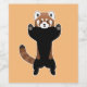 Funny red panda hands up standing vector clipart toon icon, customizable background color and text.