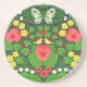Red pansies, birds and butterflies coaster