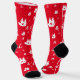 Novelty pirate socks with a pattern of anchors, ships, and smiling skull and bones. They have a red and white color scheme. Simply add these socks to your cart, get them home, and then enjoy them wherever your feet may go.