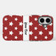 Personalized design with seamless red pattern with white stars; with white label and customizable text template for your name or message