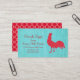 A red, quatrefoil patterned silhouette of a rooster is on a turquoise colored background with a wood grain texture.