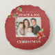 Celebrate the season with this round Peace & Joy red poinsettia pillow featuring your family photo and holiday greeting. Add a custom name to the back of the pillow. Great as a Christian Christmas gift for home or family.