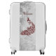 Travel in style with this unique and elegant Red Peacock Personalized Suitcase. Suitcase design features a vibrant red peacock, a soft white leaf vine against a light gray grunge background with an area to personalize with your name. Additional gift items available with this design as well as a variety of colors.