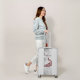 The luggage itself is awesome. So much utility for a carry-on bag. Lots of zippered pouch compartments to keep everything from getting everywhere. And it has a TSA approved lock and a dust cover! Love it. The printing is terrific. Love the way it wraps around the top and bottom. So happy the bumpers, wheels and handle color matches the design perfectly. She's gorgeous.