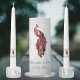 Personalize special candles for your wedding ceremony with a Red Peacock Wedding Unity Candle Set. Candle design features a vibrant peacock resting on a delicate white foliage vine against a grunge background. Personalize with the groom and bride's names along with the wedding date, and taper candles with surnames. Additional wedding stationery and gifts available with this design as well.