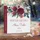 Editable text recipes binder featuring beautiful red burgundy winter peonies bouquets with seasonal pine green fir branches, red berries and foliage. Insert your text in the spots! This recipe book can be a beautiful gift for your own kitchen or a keepsake personalized gift for someone special, anniversary, birthday, Christmas, bridal shower or wedding gift.