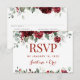 This RSVP invitation features sumptuous cascading deep red peonies bursting amongst silver eucalyptus greenery and sprays of delicate floral artistry. This watercolor painted RSVP can be customized to any occasion.