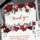 A luxury watercolor floral wedding invitation Thank You card featuring watercolor painted deep red peonies and sprays of silver eucalyptus greeneries.