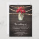 Red Peony Floral Mason Jar QR Code Wood Wedding Invitation