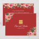 Red peony floral modern Chinese wedding Thank You Card
