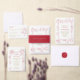 Red peonies border the elegant typography of this wedding invitation suite. You may customize the text for your event.