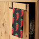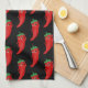 Red Pepper Diva Cartoon Pattern On Black Kitchen Towel