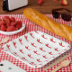 Red Chili Peppers all over art design on paper plate by artist Jason Girard.