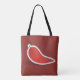 A single red pepper graphic. This design looks really effective on this Tote Bag