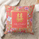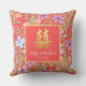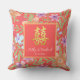 Red Peranakan floral double xi Chinese wedding Throw Pillow