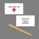 Red, pet care cross centered with simple black, customizable name above cross on front, and all business information on back with white background.