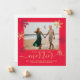 Modern, Elegant Red and Gold Snowflakes Photo Christmas Pregnancy Announcement Cards. Expecting parents! Features one (1) photo template, red and gold snowflakes, with the text "the more the merrier". The "merrier" word is written in a swirly hand lettered typography font on red color background. White color back side. This winter pregnancy card great to share your happy news with family and friends in the holiday season. Easy to personalize it. If you need help or matching items, please contact to designer!