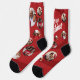 Photo Christmas socks with round photos, script text in white, and a red background. These socks are a fun way to add more photos to your holiday. Simply add your photos, add these socks to your cart, and enjoy wearing them on your feet!