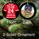 Lightweight, smooth, pure white ornament with nice sheen. Perfect size to be seen from across the room ... and to attract closer inspection! Price was great for ordering enough for the whole family! Clear, bold black design just as requested. Matches the order exactly. Just so nice!