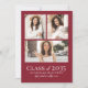 A simple and elegant graduation announcement designed with a bold red background on both sides for a striking, modern look. This rich red tone can also be considered maroon or crimson, and the shade can be easily adjusted to match school colors or personal style. Both the front and back feature photo collages that keep the design polished and timeless.