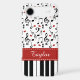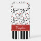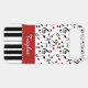 Do you love to play the piano? Hearts, a keyboard and music notes grace this piano themed pattern in red, black and white can be personalized with your name on the PRINTED ribbon look design. This makes a wonderful gift for a piano student or music teacher. A great present any pianist would love. Original design by Chrissy H. Studios, LLC. All Rights Reserved.
