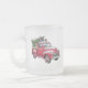 Red Pickup and Christmas Tree Frosted Glass Coffee Mug