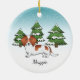 Red Pied Long Hair Dachshund Dog - Winter Forest Ceramic Ornament