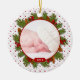 The text and photo on this Baby's First Christmas ornament are easy to customize. The design features green pine boughs, pine cones, and red holly berries on a red and white pattern background. design. A pretty and traditional option for a baby's 1st Xmas keepsake ornament. Make sure to check out the back as well, as there you can customize it with your baby's name! To change the text and photo use the personalize options. For more extensive changes to the ornament, including changing the font, font size, font color, text placement, picture size and/or picture placement, use the customize it option.