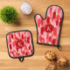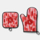 Red Pink Abstract Brushstrokes Pattern Monogram Oven Mitt & Pot Holder Set
