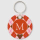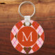 Red Pink and Brown Argyle Pattern Monogram Keychain