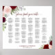 Make it easy for your guests to find their seats at your wedding reception with this beautiful red floral seating chart. This chart has room for up to 250 names in alphabetical order. The hand painted watercolor design features roses in shades of burgundy red and blush pink along with eucalyptus leaves and garden greenery. The lacy script calligraphy title reads: please find your table, and there is room for the names of the couple and wedding date below. Simple, elegant, and rustic, this lovely seating chart will add beauty and grace to your reception.