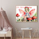 This whimsical watercolor wall art features a sweet green-haired fairy with pink wings sitting on red mushrooms, surrounded by a soft woodland scene. The quote “Be Kind!” adds a positive and magical message—perfect for nurseries, kids’ rooms.