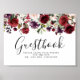 Rustic and elegant sign our guest book sign template. It features a lush border along the top that contains deep burgundy red roses. These make it perfect for an autumn or winter wedding. Soft blush pink roses add a romantic touch and purple peonies give it a modern vibe. Lots of greenery leaves and dangles give it a fresh look. Guestbook is written in a trendy and hip font that is very popular. Three additional lines of text let you personalize this DIY wedding sign. This is part of the Autumn Red wedding sign package that has many components. Please contact me, if you need help finding a coordinating item.