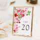 This elegant table number sign features a beautiful watercolor frame of red and pink roses. The text is black, and the background is white. Find matching items in the Red and Pink Bridal Collection.