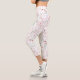 These cute capri leggings have an abstract pattern that looks like paint splatters. The splatters are in red, pink, and green on a white background.