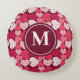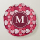 Red & Pink Jigsaw Puzzle Heart Pattern Monogram Round Pillow