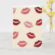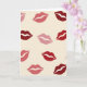 This design shows a repeating pattern of lip prints scattered across a light, creamy background. The kisses come in different shades of red and pink, from deep maroon to bright red to soft rose, which gives the card a warm, romantic look 💕. Each print has a slightly grainy texture with tiny white highlights that make the lips look shiny and full. The lip marks are spaced out in a relaxed way, so the whole front feels lively but not crowded. There are no characters or objects besides the kiss prints, and there isn’t any text shown on the card. Overall, it feels like a simple, sweet nod to affection, like leaving kisses on a note ❤️.