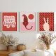Red& Pink Preppy Art Eclectic Wall Art Set of 3