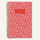 This spiral notebook features an allover tossed daisy pattern in bright pink on a bold red background — fun, graphic, and very retro. "NOTES" sits in a centered label at the top with a personalized name underneath in clean lowercase lettering. The gold spiral binding adds a warm finishing touch. A great pick for a teen, a back-to-school gift, or anyone who likes their desk supplies to make a statement.