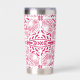 Red Pink Sheashells Coral Pattern Modern Beach Insulated Tumbler features a captivating red and white pattern adorned with seashells, capturing the essence of traditional Portuguese style and influences of Aztec art, with modern touch. This design merges the minimalistic symmetry and bold, geometric hand-drawn charm.