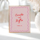 The sign comes in a delightful color scheme of pink and red, evoking feelings of warmth and happiness. These colors perfectly complement the playful design and further enhance the festive mood of the occasion.