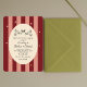 Set the tone for a joyful and unforgettable celebration with this playful yet elegant wedding invitation. Featuring bold red and blush pink stripes with golden star accents, this retro-inspired design brings a fun, circus-meets-romance vibe to your big day. Perfect for couples who want their wedding stationery to feel both unique and memorable, it’s ideal for vintage-themed celebrations, carnival-style weddings, or simply a bold and creative love story.