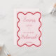 Trending red wavy border bridesmaid proposal with pink bow and cursive calligraphy font 'will you be my bridesmaid/maid of honor' proposal card.