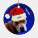 Red Pit Bull with Santa Hat Christmas Ceramic Ornament