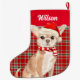 Red Plaid and Tan Chihuahua with Dog's Name Large Christmas Stocking