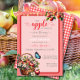 Introducing our enchanting Baby Shower Invitation in pink, red, and white colors. A chic fruit theme baby shower with watercolor pink, red, and green leaves, an apple basket on the front with editable baby shower details, and plaid on the backside of the card for orchard-inspired celebration. script, and stylish calligraphy. #applebabyshower #appleofoureyebabyshower #applethemebabyshower