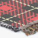 A quality printed throw has its advantages. This is a much finer weave throw than its loopier cousins, and though lighter, it is worth the investment for custom room accessorizing. The back is much prettier than the typical brown, and the fringe on the long sides very vivid, the selvage nicely done. Before photographing, I washed the throw in cold water, delicate, with a thicker woven throw the same size. On tumble dry low, this throw was dry in half the time as the other. This is a very practical quality if you use throws for furniture covers or to wrap up in frequently. The sleekness of the fabric makes it a great layer for accenting or protecting without the feeling of sitting on too much stuff. Perfect for napping or when you feel a light chill coming on. The color printing is beautiful and on this fabric, matched the design and color of my Photoshop image. This is an advantage for blending room fabrics and colors. The fringe on the short sides prints the colors from the design image and therefore varies from the side fringe. I streaked a white fractal line through the plaid pattern to give the illusion of weaving. This printed as crisp as an illusory thread, and put some white in the short side fringe, showing another advantage of print vs loomed- for artistic purposes, line lines, detail, and color integrity can be planned and preserved. My loomed throws have color limitations and more of a needlepoint texture. Print throws reproduce an exact image. The throw felt a little stiff straight out of the package, but this went away in the first delicate wash. Of course I searched the wash water for ink or bleeding and there was none.